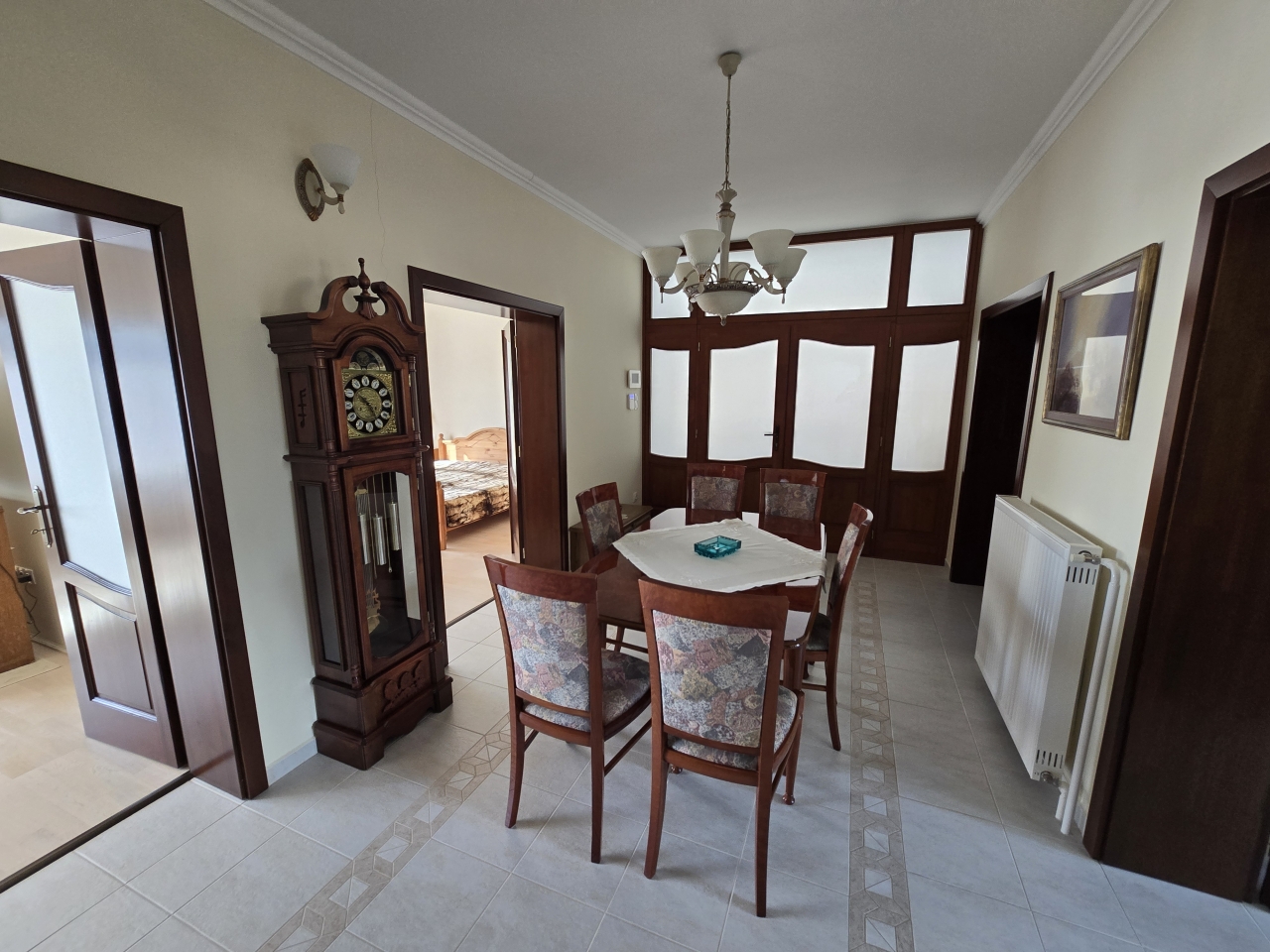 A földszinti lakótér három tágas szobából, egy világos, nagy méretű konyhából, kamrából, több mint 15 m²-es étkezőből, fürdőszobából, külön WC-ből, valamint előszobából áll. A helyiségek elosztása átgondolt és praktikus, a ház kiváló fényviszonyokkal rendelkezik, minden helyiség tágas és világos.