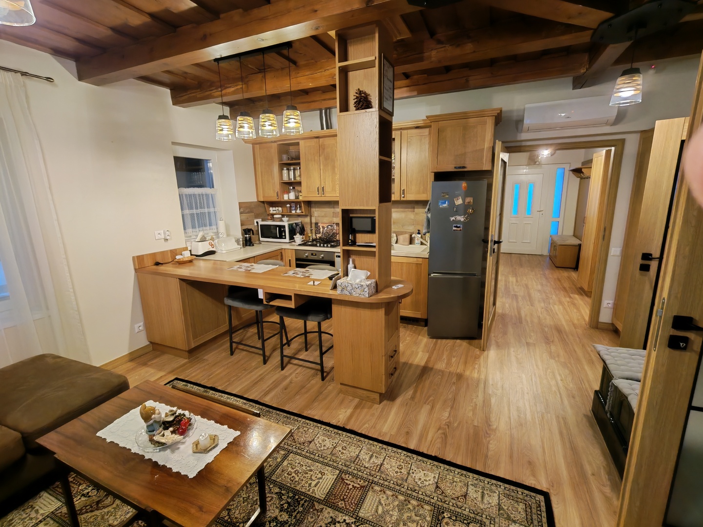 Az ingatlan négy évvel ezelőtt teljes körű külső és belső felújításon, valamint átgondolt átalakításon esett át. A korszerű műszaki megoldások és az esztétikai igényesség tökéletes összhangban jelennek meg: új fűtésrendszer, gondosan kialakított belső terek, valamint egy hangulatos cserépkályha, amely nemcsak meleget, hanem karaktert is ad a háznak. A prémium minőségű, egyedi fa konyhabútor beépített gépekkel a mindennapi használat mellett az enteriőr egyik meghatározó eleme.