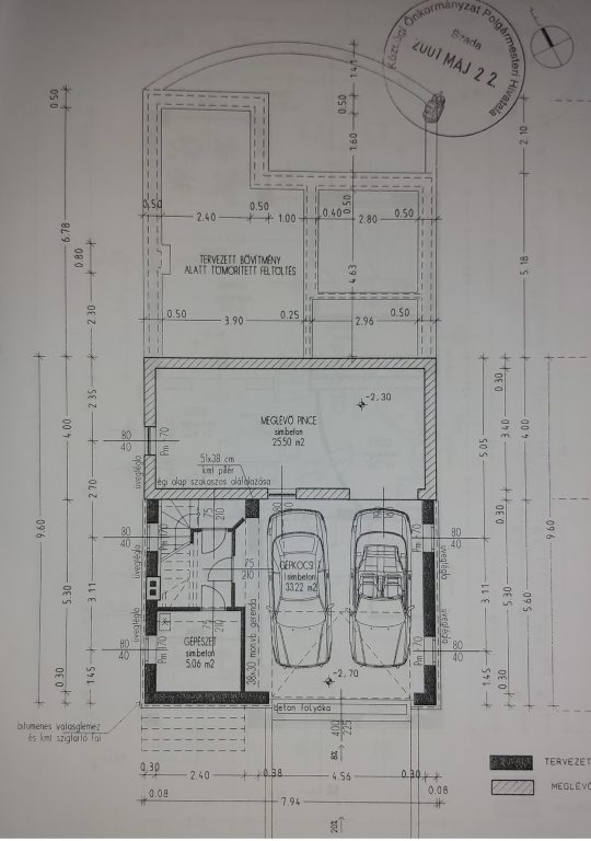 Szuterén (70 nm): 2 állásos garázs, kazánhelyiség és tároló.
