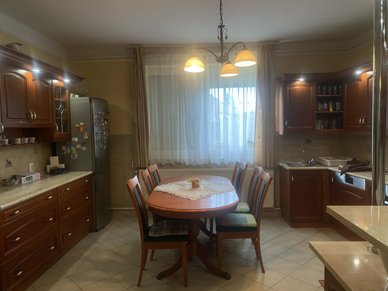 A ház egyik különleges értéke a gyönyörű, egyedi, tömörfából készült konyhabútor, amely elegáns, időtálló megjelenést biztosít.