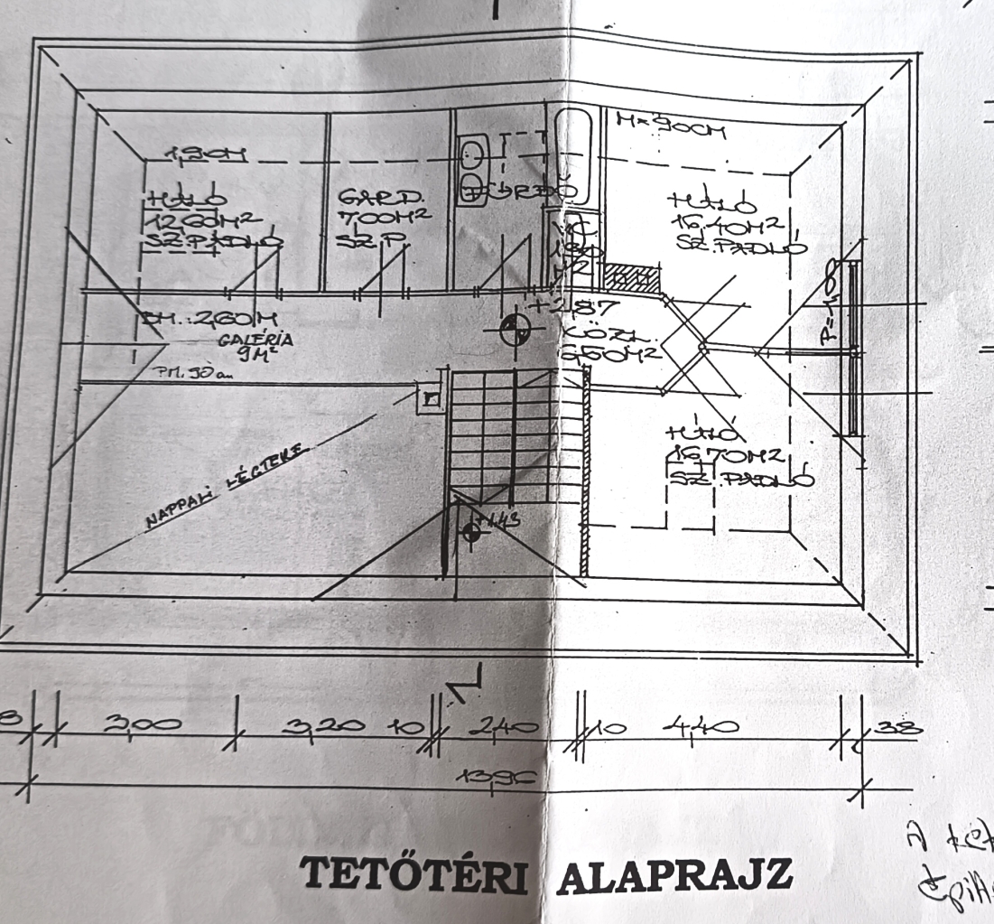 A beépített tetőtér 3 hálószoba, egy gardróbszoba, egy fürdőszoba, egy olvasó galéria, és egy tágas közlekedő kapott helyet.