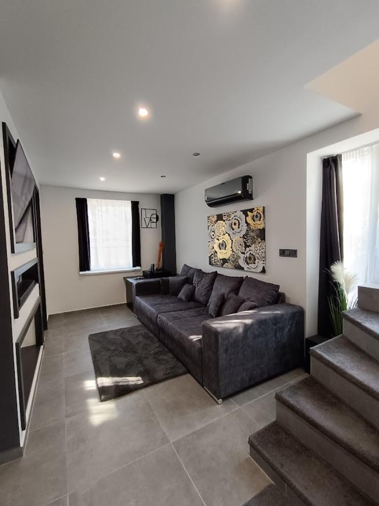 Az alsó szinten padlófűtés, modern LED világítás, klíma, antracit kanapé, Samsung TV és házimozi, valamint egy stílusos konyha gránit mosogatóval és rejtett konnektorokkal vár. Kerámia étkezőasztal hat székkel hívogat egy kellemes étel elfogyasztására