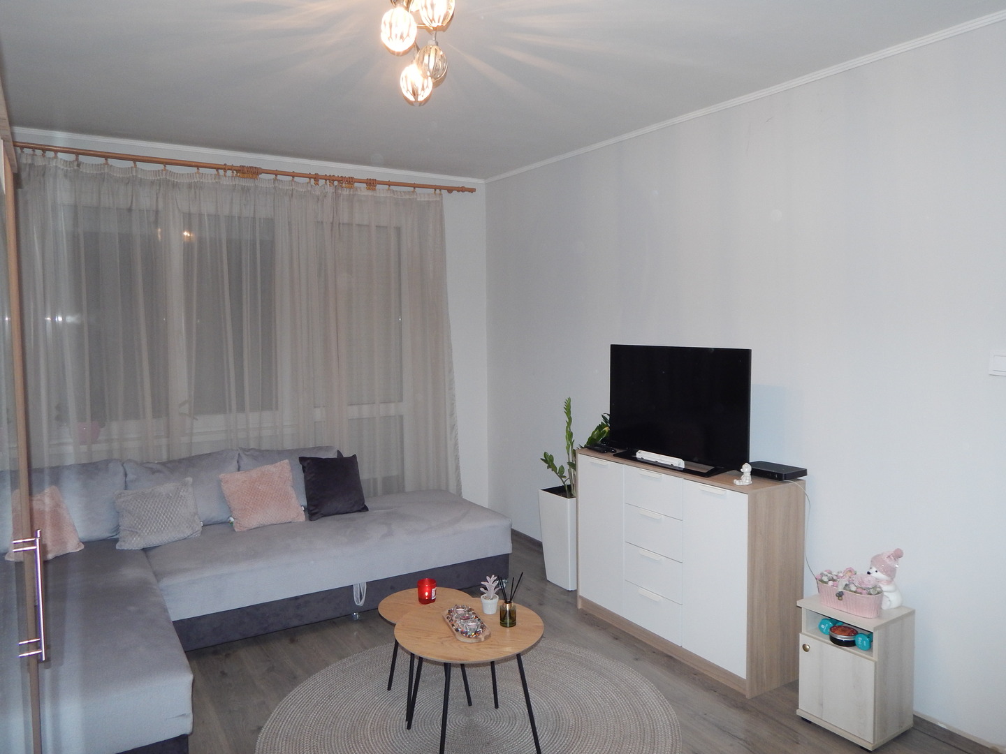 A lakásban lévő burkolatok szépek, és kifogástalan állapotban vannak. A belső ajtók is le lettek cserélve, jó minőségű fenyőből készültek.