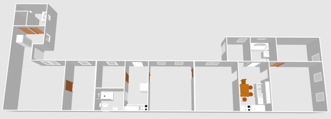 A ház kialakításának hála, akár 3 külön álló lakrészre is lehet osztani, (jelenleg 2 család lakja).