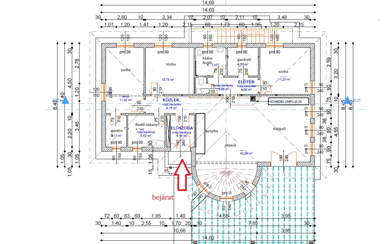 Az épület kiváló minőségű, 30 cm-es Porotherm főfalakból készült, melyet 15 cm-es külső hőszigetelő rendszer borít garantálva az alacsony rezsit, a tetőt antracit színű betoncserép fedi.