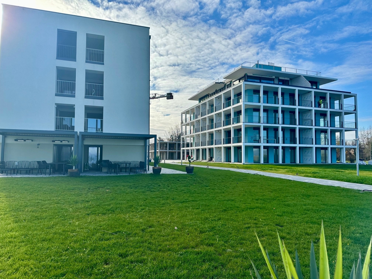 Az ingatlan egy 15.000 négyzetméteres, teljesen körbekerített, biztonságos és csendes területen található. A lakásokhoz parkoló vásárolható.