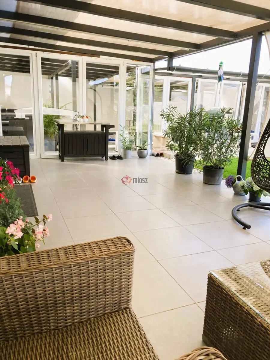 A házhoz tartozik egy fedett, 100 nm-es wellness részleg, amiben egy 5x8-as, saját hőszivattyús, H-tarifás mérőórán működő medence és jakuzzi kapott helyet.